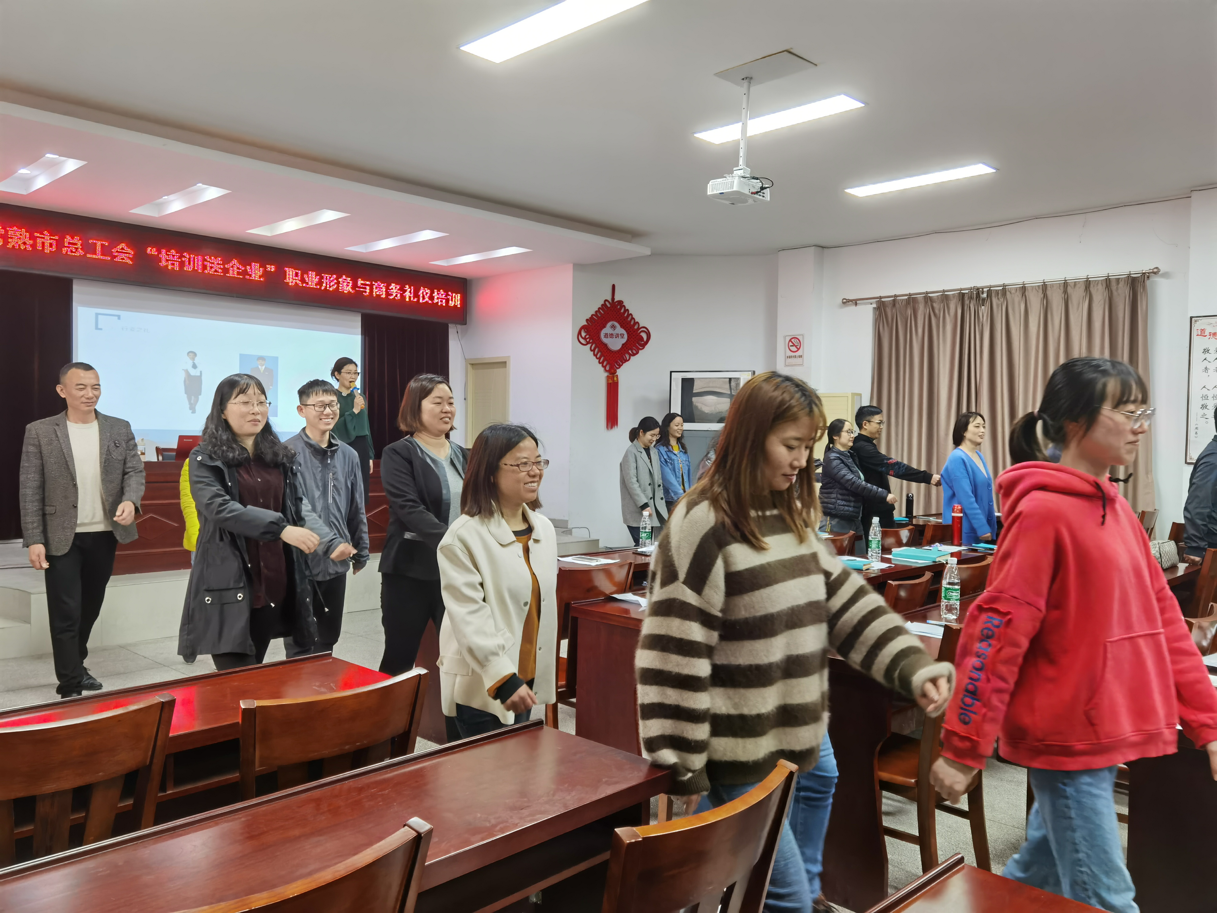 參加培訓(xùn)的員工都倍加珍惜此次學(xué)習(xí)的機(jī)會(huì),認(rèn)真聆聽(tīng)。趙老師靈活、深入淺出的為大家講解商務(wù)禮儀,并邀請(qǐng)員工們參與互動(dòng)、現(xiàn)學(xué)現(xiàn)用。