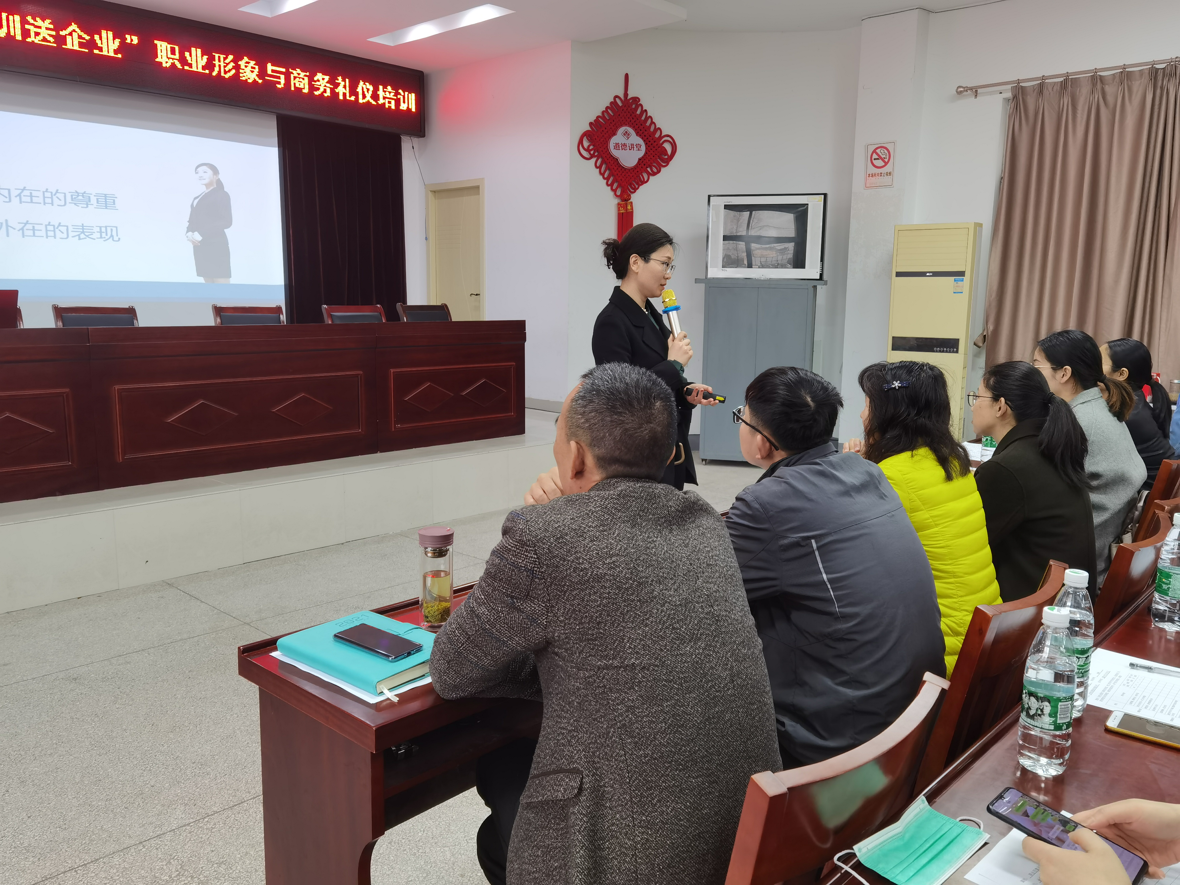 為規(guī)范商務(wù)行為、提升職業(yè)素養(yǎng)、樹(shù)立積極的職業(yè)心態(tài)、塑造專(zhuān)業(yè)的職業(yè)形象,讓員工由內(nèi)而外增強(qiáng)自信心,更有效更高效地做好工作,3月27日,永華化學(xué)工會(huì)舉辦了“職業(yè)形象與商務(wù)禮儀”培訓(xùn)活動(dòng),本次培訓(xùn)公司邀請(qǐng)了專(zhuān)業(yè)講師趙崢老師主講,公司銷(xiāo)售部、供應(yīng)鏈中心以及管理層人員參加。