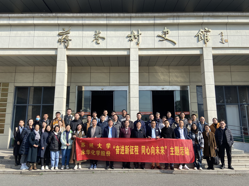 為深入學習貫徹黨的二十大精神,弘揚“四敢”精神,11月29日,蘇州大學黨委統(tǒng)戰(zhàn)部黨支部與我司黨支部在常熟市蔣巷村開展“奮進新征程 同心向未來”聯(lián)合主題黨日活動。蘇州大學黨委常委、統(tǒng)戰(zhàn)部部長、支部書記黃志斌,常熟市支塘鎮(zhèn)原副鎮(zhèn)長、二級主辦湯煒,常熟市支塘鎮(zhèn)蔣巷村第一書記常德盛,永華化學股份有限公司總經(jīng)理、支部書記顧學峰參加活動。